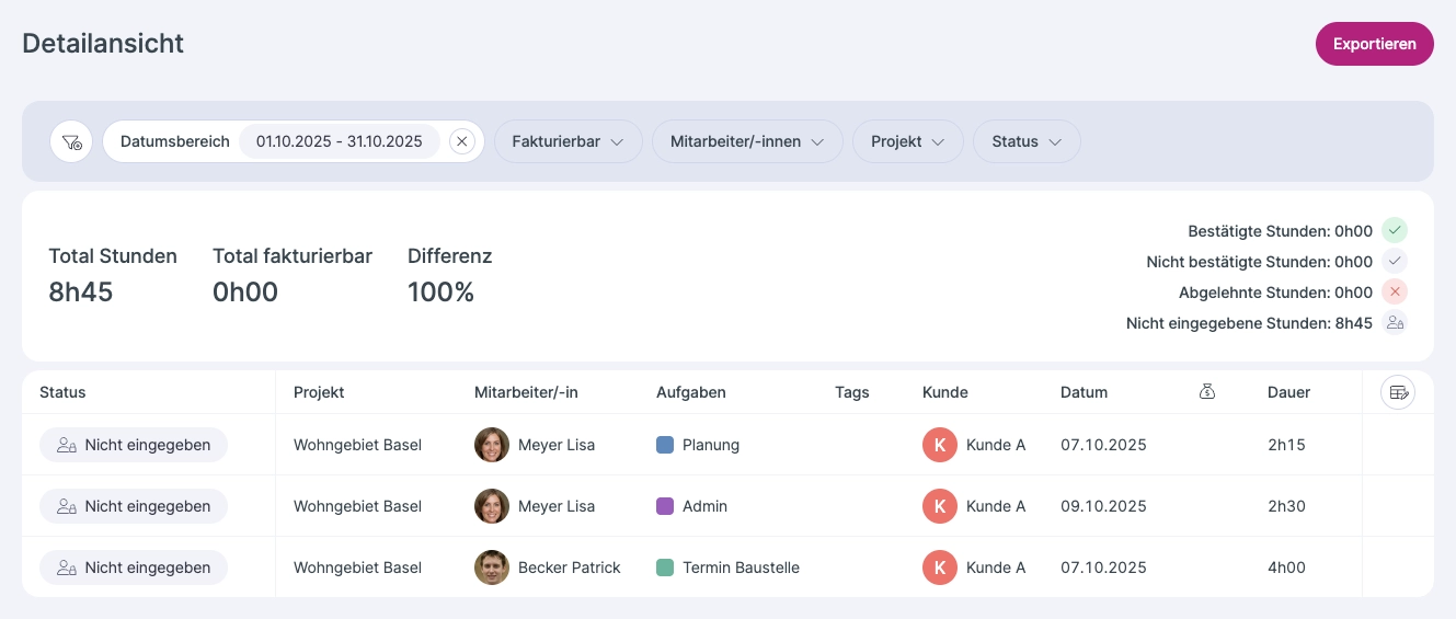 Kein Papierkram am Ende des Arbeitstages, keine manuellen Excel-Listen mehr. Alle sparen Zeit, und Eingabefehler werden vermieden. Die Daten stehen zentral bereit – für Führung, HR und Buchhaltung.