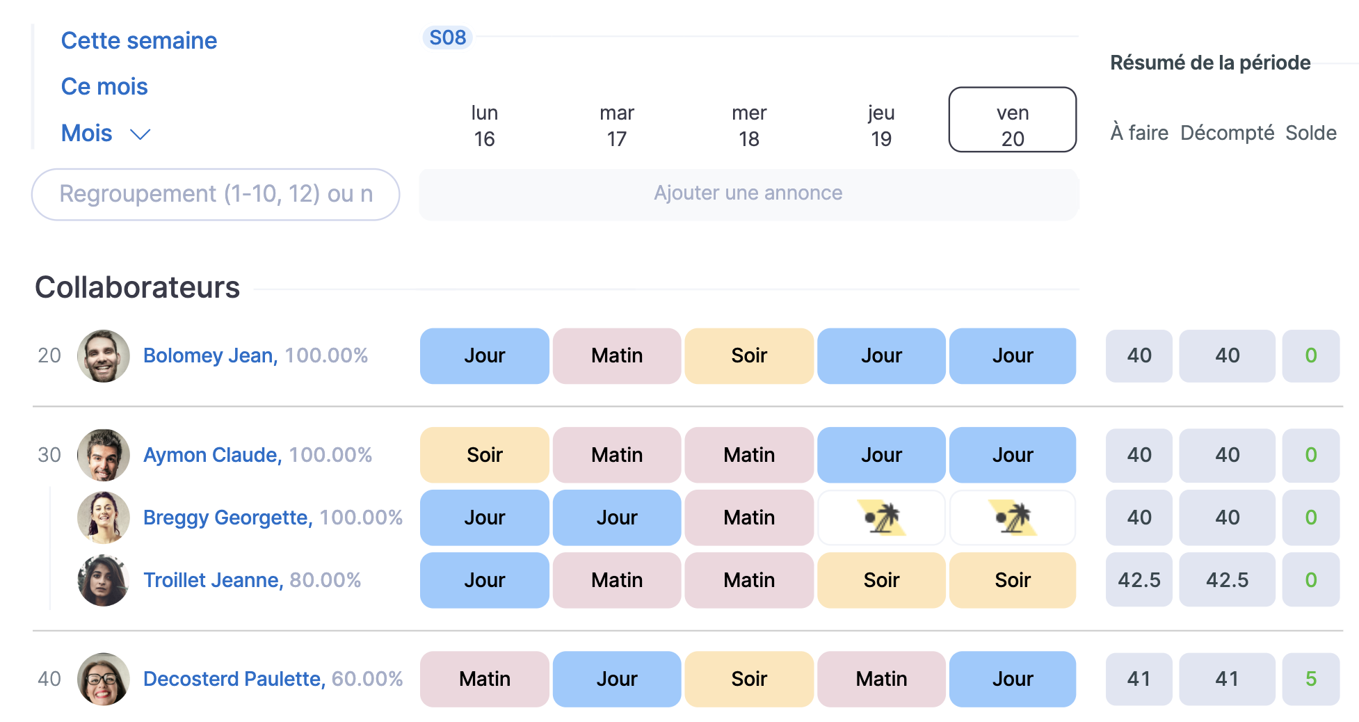 La planification vous permet d’organiser le travail de vos équipes de manière efficace. Indiquez aussi vos besoins en personnel pour chaque tranche horaire, et tipee s’assure de couvrir ces besoins.